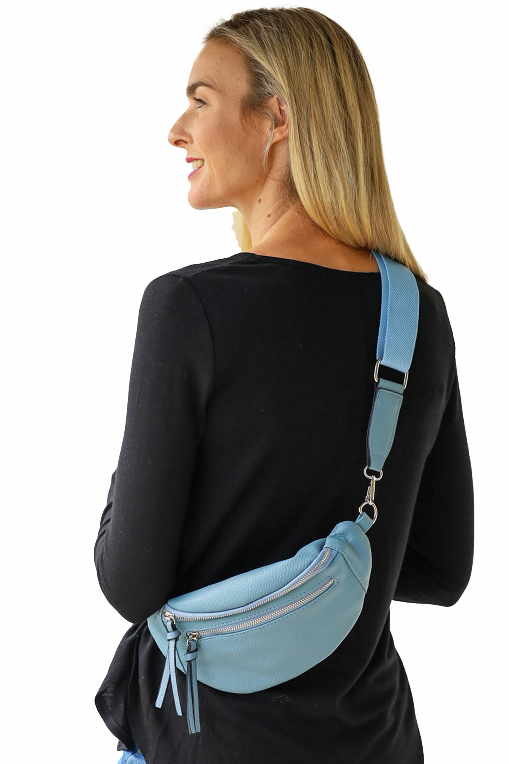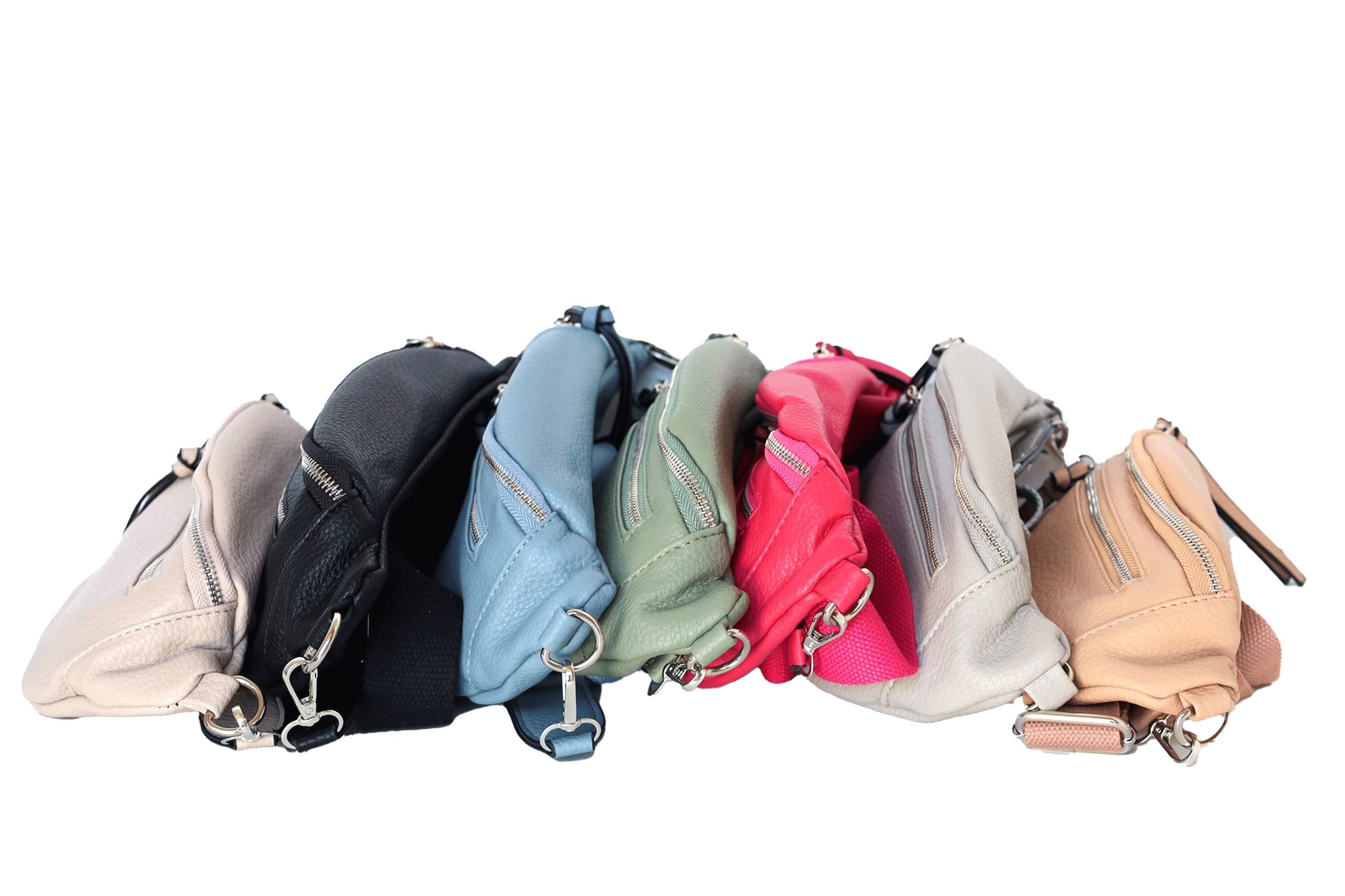 Two Zip Compartments, Changeable Bag Strap. Also available in Dusky Green & Hot Pink.