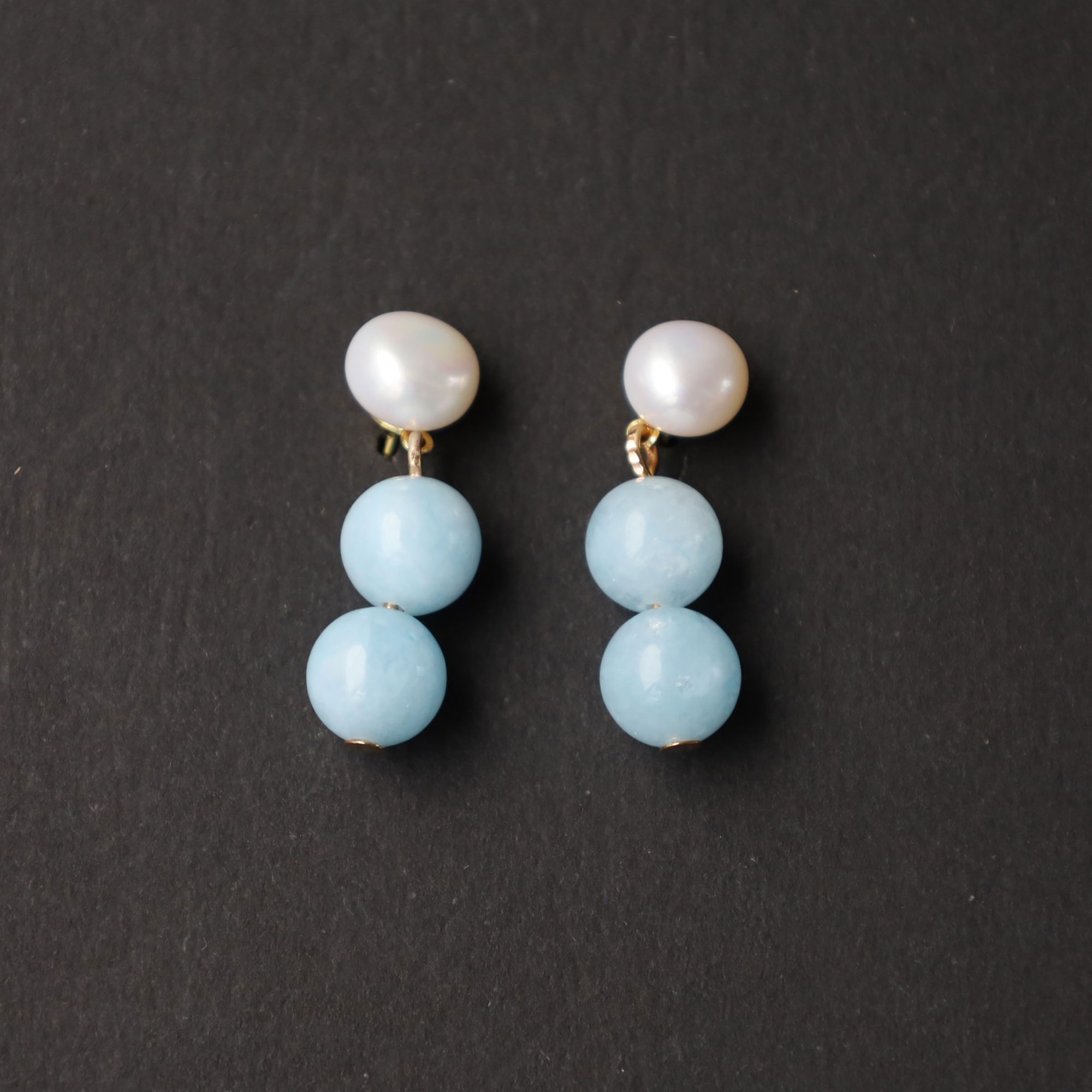 Genuine Pearl & Double Stone Stud Earrings